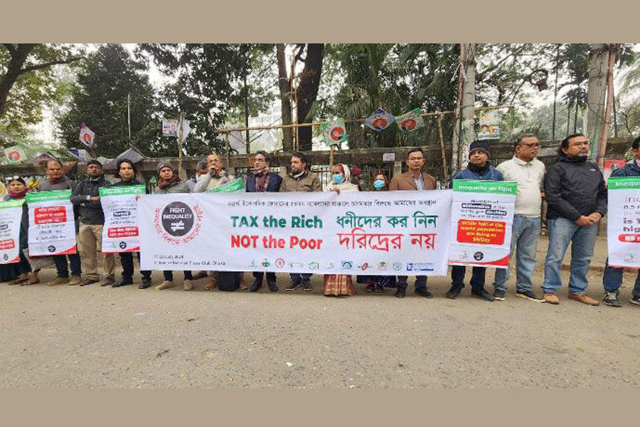 The demand was from a rally organised by twelve civil society organisations led by Equity and Justice Working Group (EquityBD) in front of the National Press Club in the capital in solidarity with the global civil society network Fight Inequality Alliance on the eve of the 54th Conference of the World Economic Forum with the slogan "Tax the rich, not the poor".