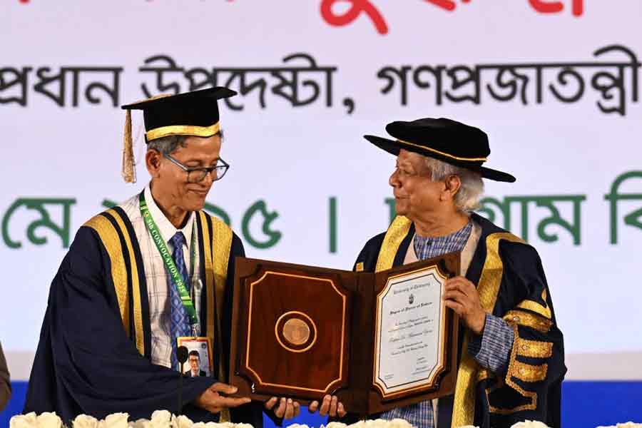 Chittagong University (CU) authorities on Wednesday conferred hononary Doctorate of Literature (D.Litt) degree on Chief Adviser Professor Muhammad Yunus for his outstanding contributions to alleviating poverty through microcredit and establishing peace across the globe.