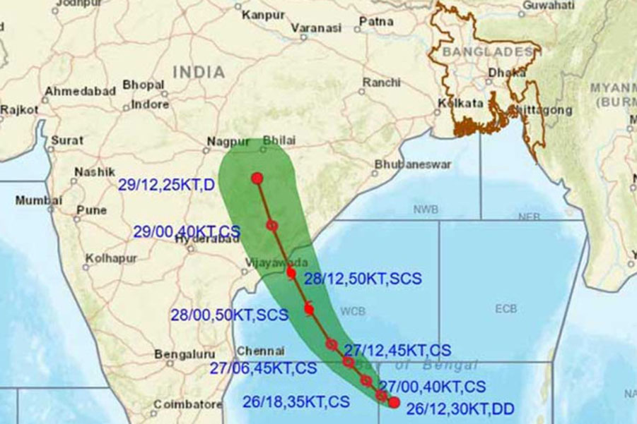The storm is expected to move further west-northwest as it intensifies and cross India’s Andhra Pradesh coast on Tuesday evening or night, reports bdnews.com.
