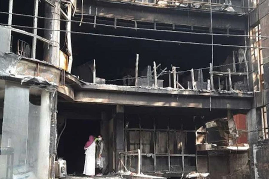 Dressed in his morning attire, Sahabuddin Talukdar, a resident of Nawratan Colony on Bailey Road, stood outside the charred remains of the Green Cozy Cottage building on Friday, staring in disbelief at the devastation before him.