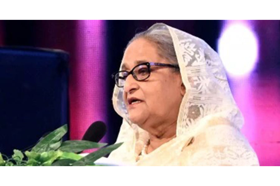 The prime minister was distributing cheques of "Bangabandhu Science and Technology Fellowship," "National Science and Technology (NST) Fellowship" and special research donations among teachers, scientists, researchers and students of different universities.