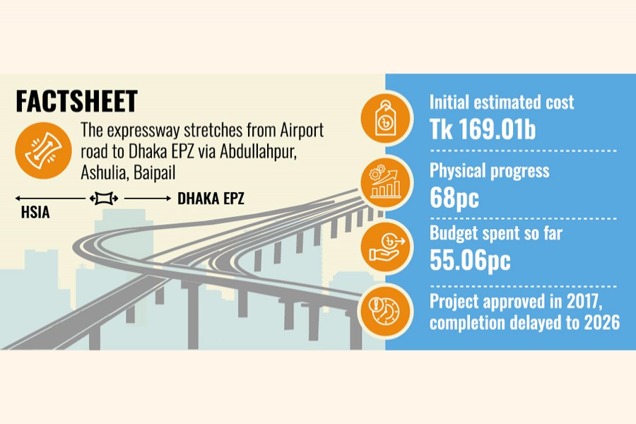 Connecting Hazrat Shahjalal International Airport to Abdullahpur, Ashulia, Baipail, and the Dhaka EPZ area, the project -- aimed at linking Dhaka with 30 districts and easing industrial congestion to boost trade -- did not initially include funds for land acquisition, prompting the division to seek additional financing eight years after its approval, according to Planning Commission officials.