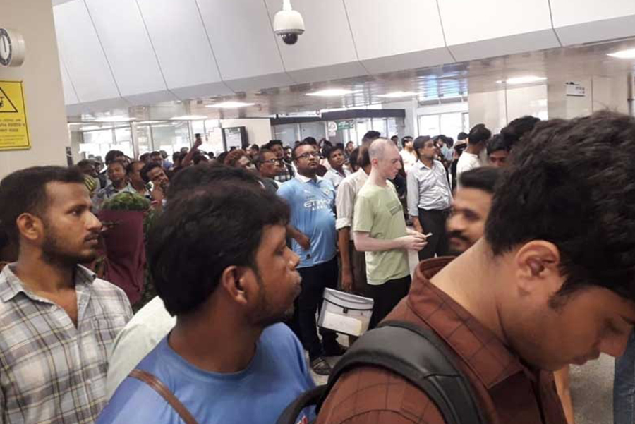 A similar sight could be seen at the Dhaka University metro rail station. Ripon Mia, a student of Dhaka University, bought a ticket after standing in line for a long time.