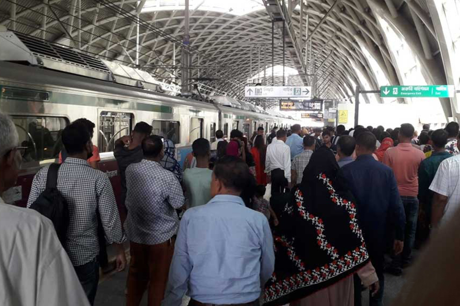 Long queues of metro rail passengers could be seen at stations like the Secretariat and Shahbagh. The stations themselves were swamped by passengers, bdnews24.com reports.