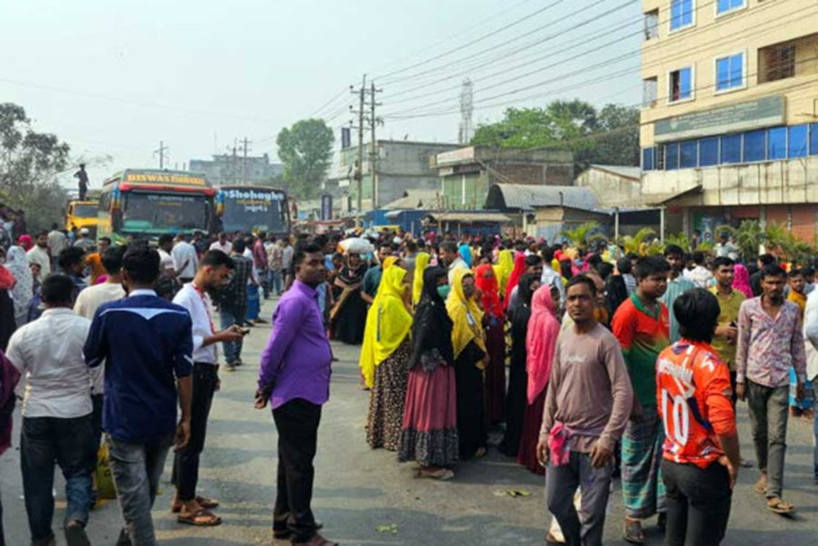The protest by workers at the Golden Refit Garments Limited factory began around 8:00 am on Wednesday. Shortly afterwards, they blocked the highway and brought traffic to a halt, according to Abdul Halim, chief of Joydebpur Police Station.