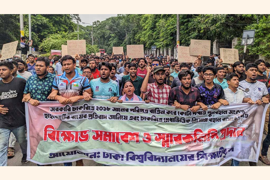A group of Dhaka University students are protesting the High Court’s decision to reinstate the quota for Liberation War fighters in government jobs.
