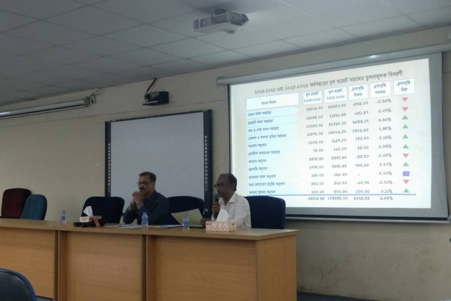 DU Treasurer Prof. M. Jahangir Alam Chowdhury explained various aspects of the budget at a press conference.