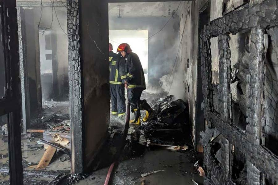 The fire fighters brought the blaze at a multi-storey building in Dhaka’s Dhanmondi under control around 11:17 am on Wednesday.
