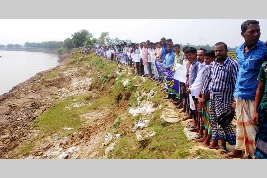 Apart from these, Shibaloy and Daulatpur of Manikganj; Bhuapur and Nagarpur upazilas of Tangail; Chauhali, Belkuchi, Shahjadpur, Kazipur and Sadar upazilas of Sirajganj; Bera and Sujanagar Upazilas of Pabna; Sariakandi upazila of Bogura; Fulchhari upazila of Gaibandha; Dewanganj, Islampur and Madarganj upazilas of Jamalpur are in danger due to Jamuna river erosion.