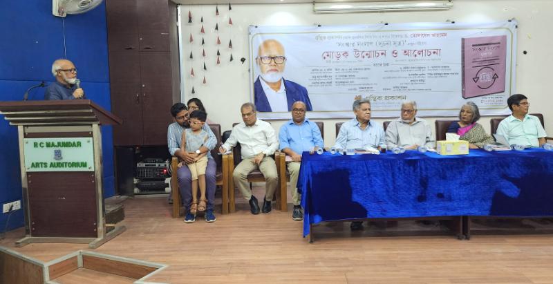 The discussion focused on the unveiling of the Bangla book "Sanskar Sanglap Suchona Sutra (Rasthra, Nirrabcohn, Sashon-proshason O Songbidhan)." Alongside Dr. Tofail Ahmed, Justice M.A. Matin, a former Appellate Division judge, shared insights. Brig Gen (retd) M Sakhawat Hussain, renowned writer and former Election Commissioner; Abu Alam Md. Shahid Khan, former secretary of the local government department; Dr. Mobasser Monem, a professor in the public administration department at Dhaka University; Sharmeen Murshid, Chief Executive of Broteeand a former member of the National River Commission; Rezaul Karim Chowdhury, Executive Director of the COAST Foundation; Rajekuzzaman Ratan, Assistant Secretary of the Bangladesh Samajtantrik Dal-Basad; and Hasnat Qayyum, Chief Coordinator of the State Reform Movement, also shared their perspectives.