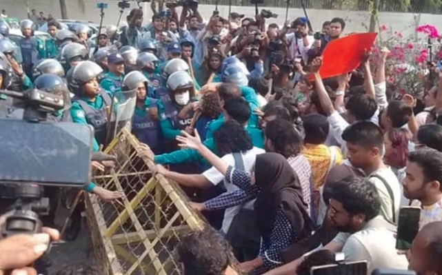 According to the press release, at around 3:30 PM on Tuesday, a group of 60-70 protesters, including both men and women, attempted to march towards the Chief Advisor’s official residence, Jamuna, under the banner of an anti-rape march. Police intercepted them at the Hotel Intercontinental intersection. Protesters then allegedly used women as shields to break through the police barricade and advance forward.