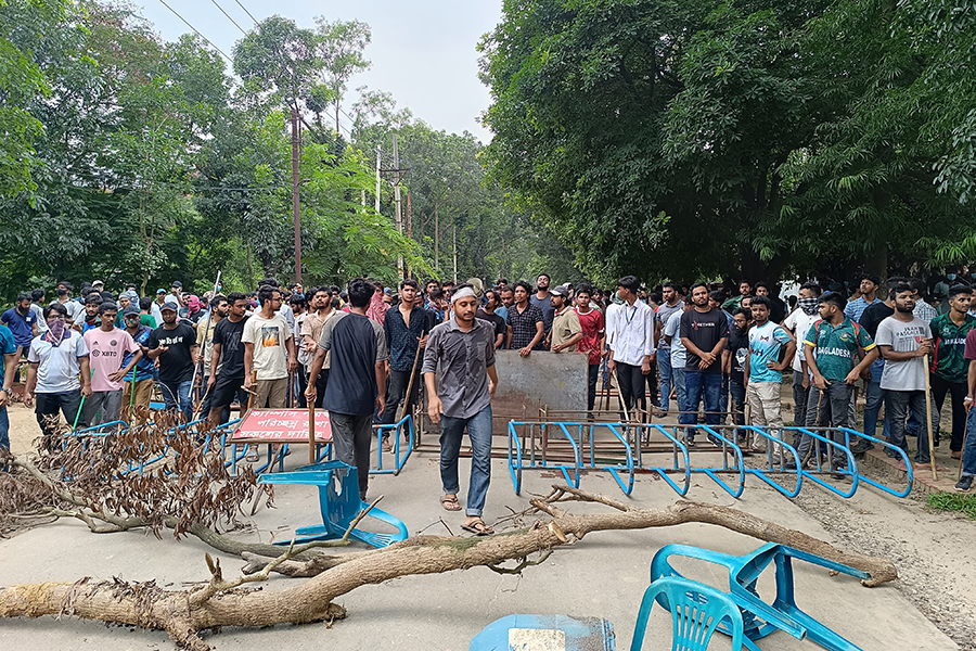 Quota reform activists claimed that the vandals were infiltrating Chhatra League workers, not part of their group. Police and students faced off in the Shahid Minar area since noon. At around 12:30 pm, over 150 policemen entered the JU campus with an APC to rescue the teachers at the Registrar Building.