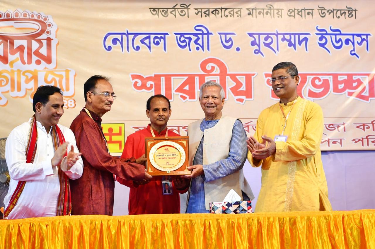 “We have created a scope for you to celebrate the puja festival with the support of the law enforcement agencies. We’ll all work together so that we do not need to do it (celebration of puja with the protection of law enforcers) anymore in the future,” Dr Yunus told the devotees.