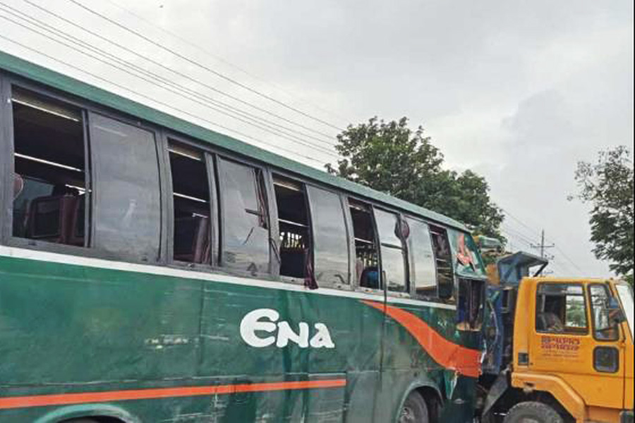 The sand-laden truck was taking a U-turn around 5:45 am when a Dhaka-bound Ena Paribahan bus crashed into it, said Atiqur Rahman, senior station official for the Bhaluka Fire Service. Swapan, the bus’s driver, was seriously injured in the crash.