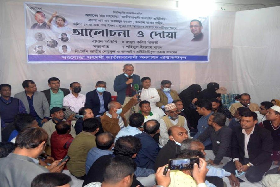 Jatiyatabadi Online Activists arranged the programme on the ground floor of BNP's Nayapaltan central office seeking eternal peace of the departed souls of their late colleagues, including MM Obaidur Rahman, Kamarul Hasan Shaheen, Tanima Soma and Shant Islam.