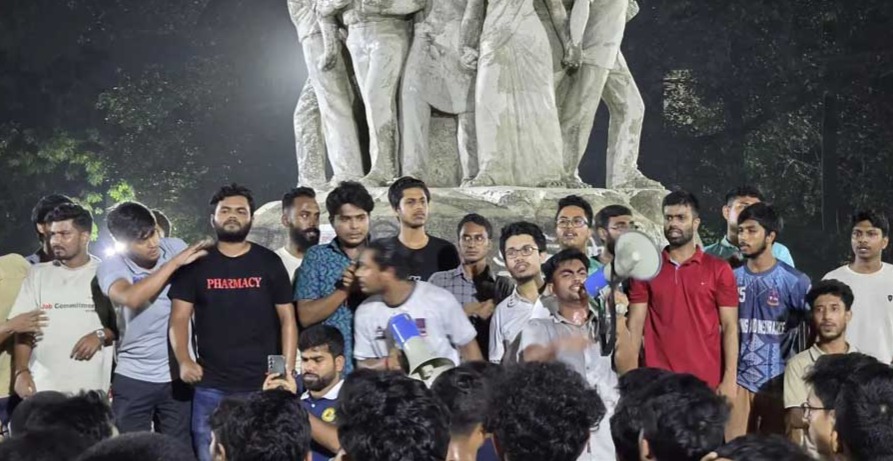 They brought out a procession around 1am on Sunday from Jagannath Hall, which marched and ended at Raju Sculpture via VC Chattar.