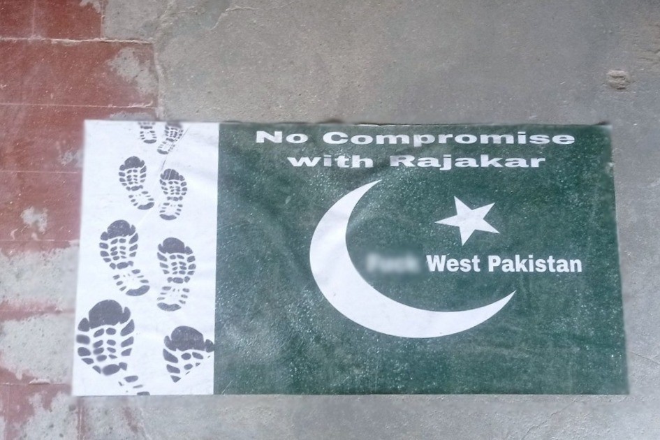 In the month of victory, students at Dhaka University (DU) staged a symbolic protest against 1971 razakars (collaborators) by trampling Pakistan’s flag.