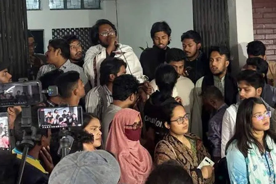 The protest began at around 2:30 pm on Sunday, when DUCSU leaders, hall union representatives, and a group of students gathered in front of the administrative building. During the demonstration, they chanted slogans such as 'There will be no place for fascism at DU' and 'Down with Mujibism.'