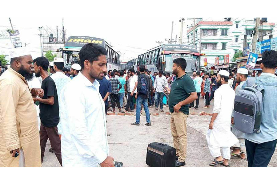 Protesters from the student group gathered in front of the United Service counter at Maskanda bus stand, while transport workers blocked the Dhaka-Mymensingh bypass from noon, according to Md Shibirul Islam, chief of Mymensingh Kotwali Model Police Station.