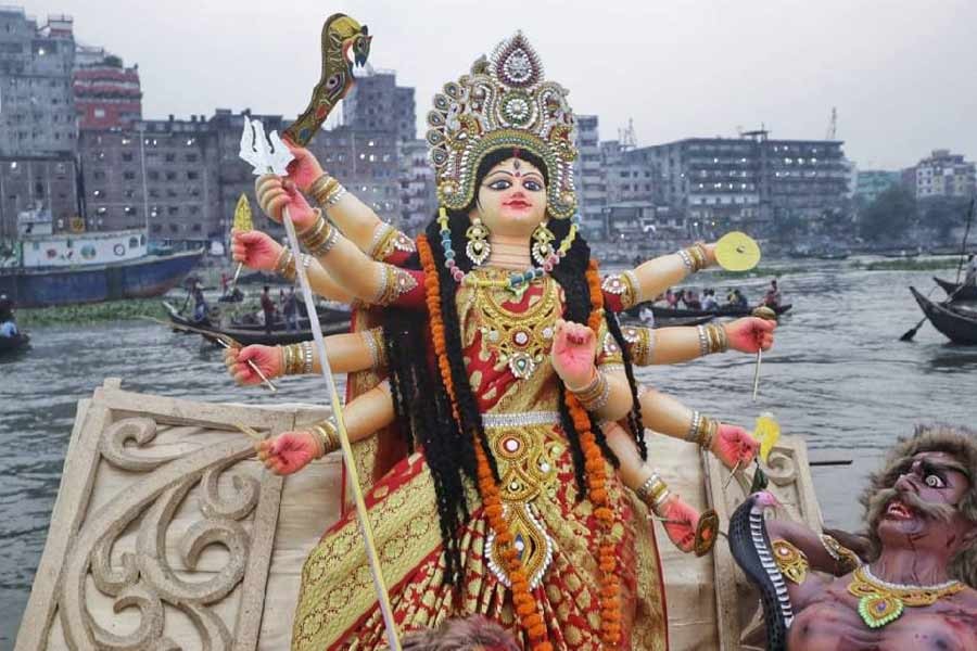 The common ritual of the Bijoya Dashami follows the journey of immersion through festive processions on the day, reports UNB.
