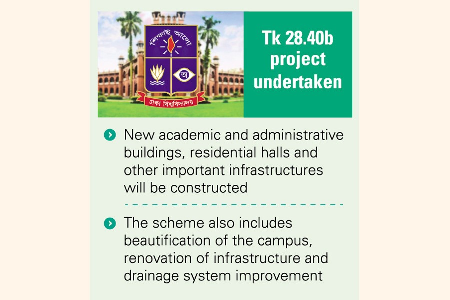 A comprehensive infrastructural development project for Dhaka University with an estimated budget of Tk 28.40 billion (Tk 2,840.39 crore) has been approved by the Executive Committee of the National Economic Council (ECNEC).