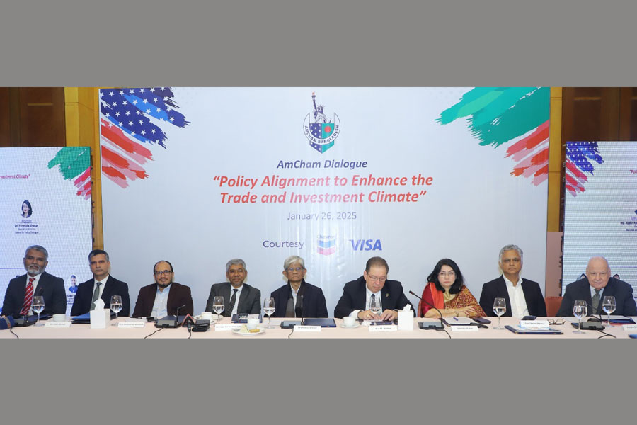 The American Chamber of Commerce in Bangladesh (AmCham) hosted the dialogue on "Policy Alignment to Enhance the Trade and Investment Climate" at a city hotel.