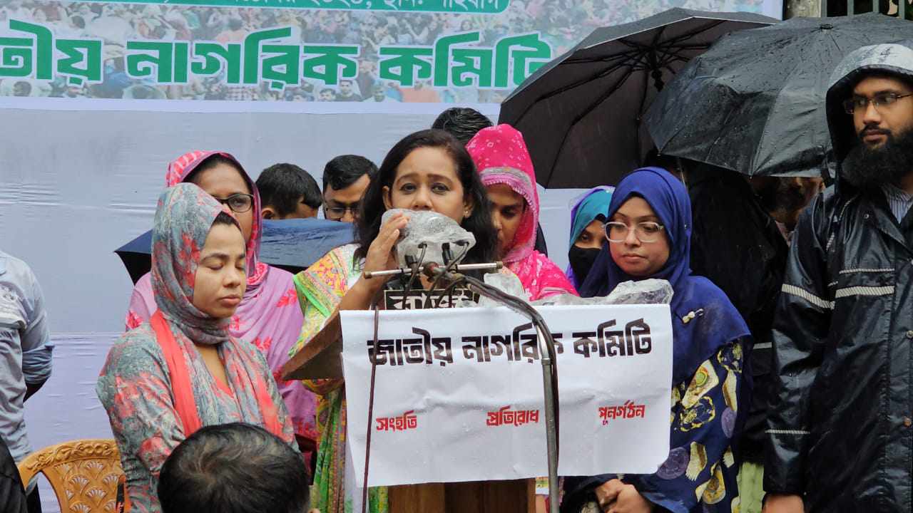 Key figures at the rally included Nagorik Committee convener Nasir Uddin Patwary, member secretary Akhtar Hossain, and members Ariful Islam Adib, Sanjida Akhter Tuli, and Pritam Das.