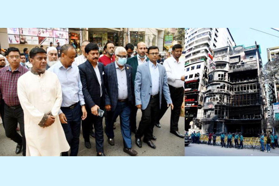 FBCCI leaders made the demand after visiting the fire-ravaged building on Saturday morning.