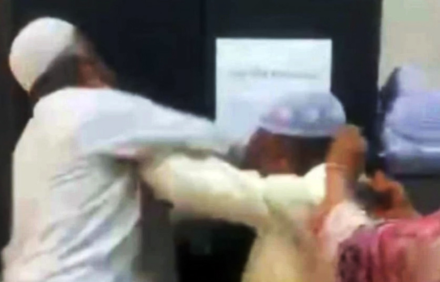 The brawl broke out between two officials, Nazmul Hasan and Nazrul Islam, at the municipality office on Wednesday noon.