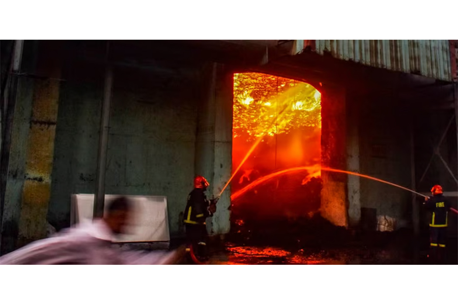 “The fire erupted on Monday afternoon, but it is still not extinguished. Everyone is trying to put it out. The company has yet to determine the cause and the extent of the damage,’’ said S Alam Group General Manager (Commercial) Md Akther Hasan.