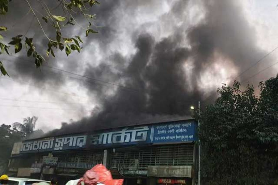 A fire broke out at Rajdhahi Supermarket in the city’s Tikatoli area on Wednesday evening.