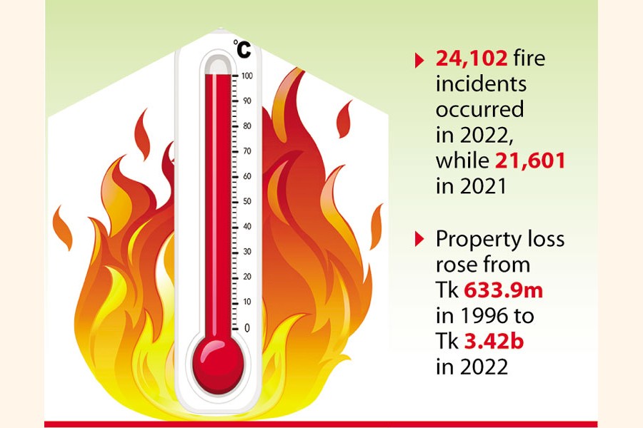 A total of 253,048 fire incidents occurred from 1996 to 2018, causing a loss of property worth about Tk 64.23 billion.
