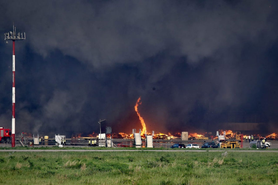Officials said the fire started at the northern side of the import cargo complex, near Gate 3.