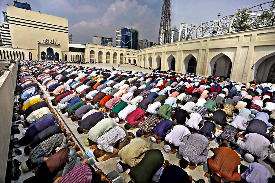 In Dhaka, the first Eid congregation was held at the Baitul Mukarram National Mosque, led by senior Imam Hafez Mufti Maulana Mizanur Rahman on Saturday, reports bdnews24.com.