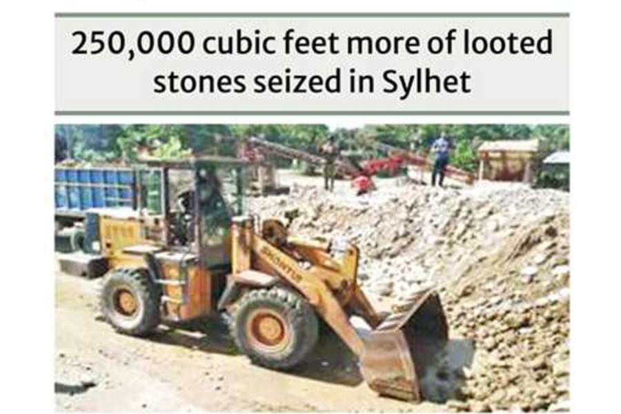 BSS adds: A joint force seized on Saturday 250 thousand (2.5 lakh) cubic feet of looted stones during a drive in the Dhupgul area of Sylhet Sadar upazila.