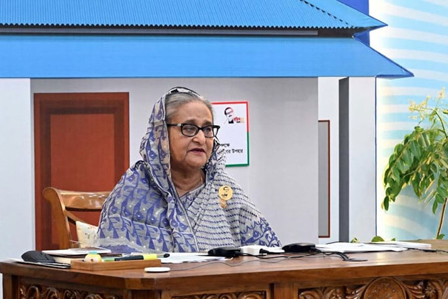 She distributed the homes along with the ownership documents of land among the beneficiaries through video-conferencing from a function at her official Ganabhaban residence here.