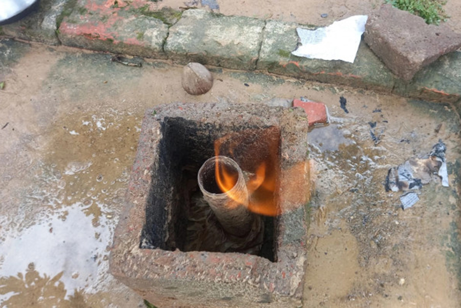 Fed up with the noise, Kashem recently removed the well and detected a gas odour coming from the pipe. To confirm, the he held a lit match near the pipe, which instantly ignited a flame.