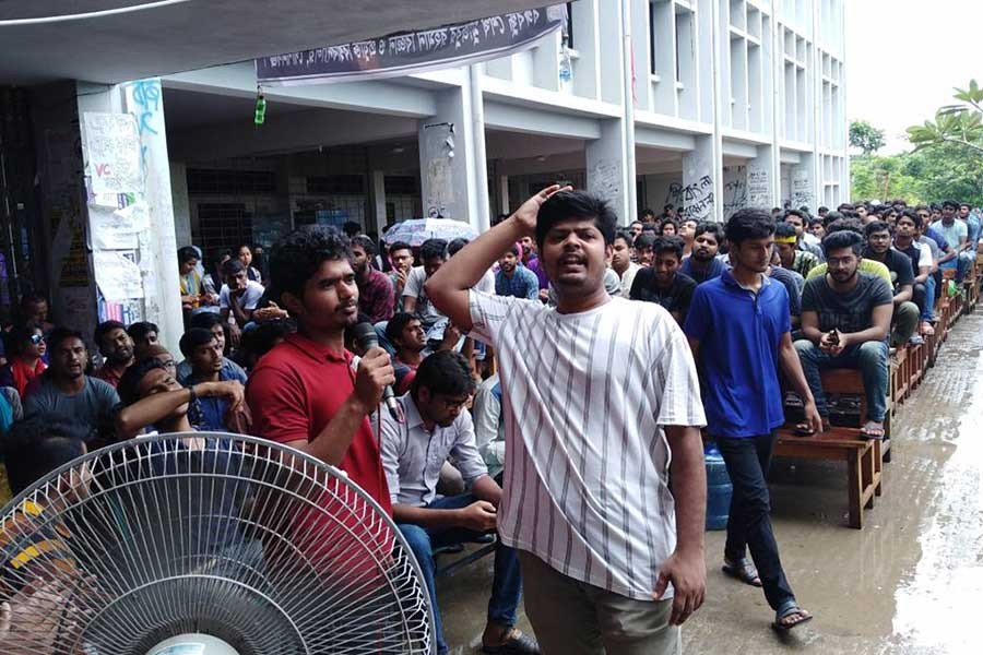 In the morning, the UNB correspondent saw students peacefully demonstrating on the campus seeking ouster of VC Prof Khondoker Nasiruddin.