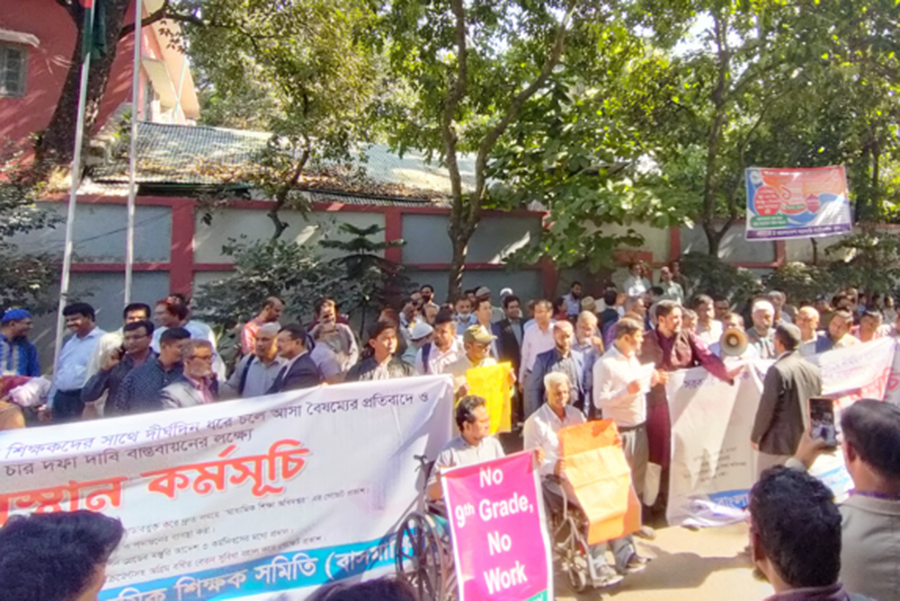 The teachers have long been pressing for realisation of four demands, including elevating their pay-scale from Grade 10 to Grade 9, and forming an independent Directorate of Secondary Education without delay.