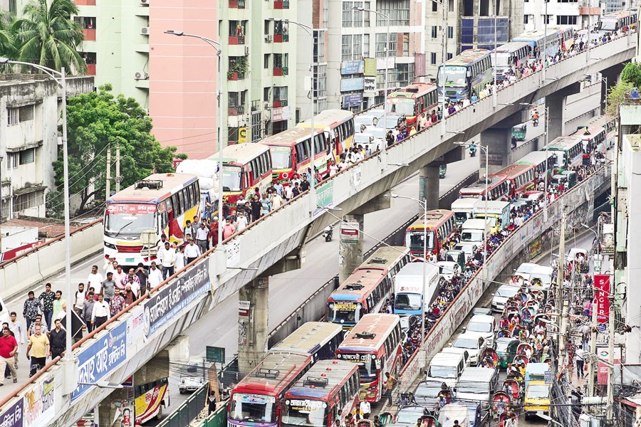 Mr Rahman had no alternative but to reach Fakirapool for his business. It was difficult to walk since many commuters along with political leaders and activists were occupying the streets.