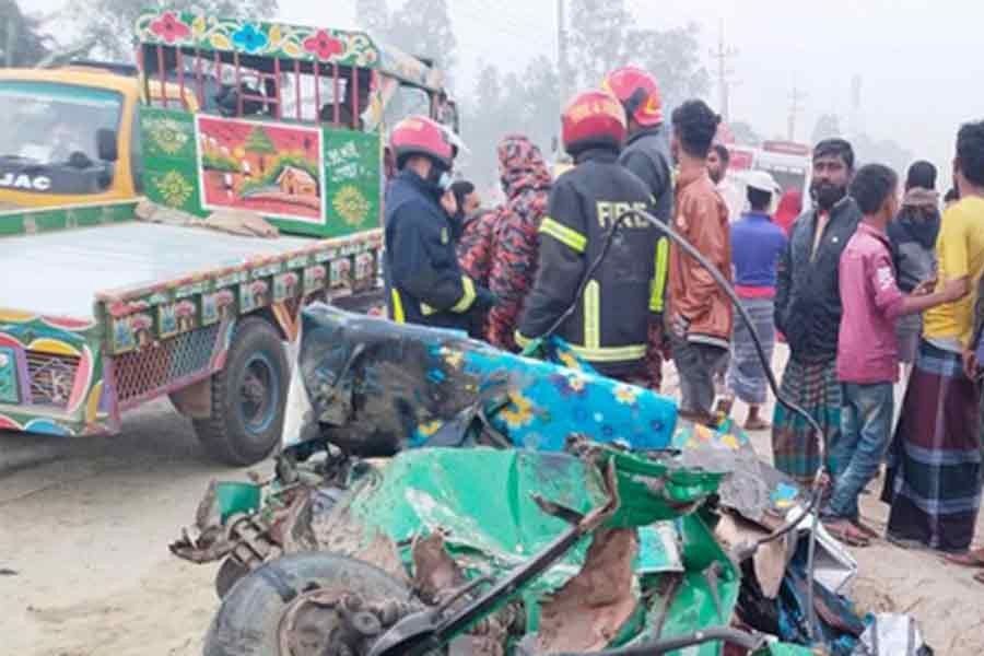 Head-on collision between bus, autorickshaw leaves five dead in Bogura