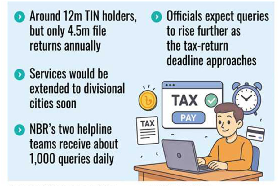 On average, two dedicated helpline teams of the NBR, one in the board and another in e-tax management unit, are getting 1,000 queries daily.