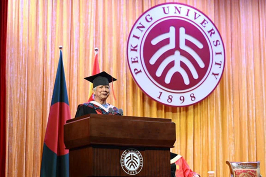 Prof. Yunus received an honorary doctorate degree from Peking University (PKU) at the function.