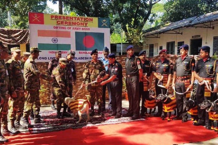 The dogs were handed over at a ceremonial function at Petrapole-Benapole ICP recently, according to Indian High Commission in Dhaka.