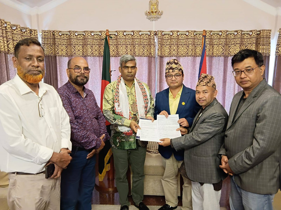 SJF Central President Raju Lama and Secretary General Md Abdur Rahman, NFNJ President Nripendra Lal Shrestha, SJF Bangladesh chapter leader Rafiqul Islam Azad, and NFNJ leader Prajit Shakya were among the delegation.