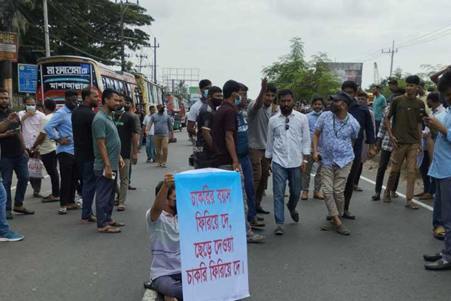 Around 11am on Saturday, they formed a human chain near the Faujdarhat Police Outpost on the highway, raising several demands, including changes to employment practices.