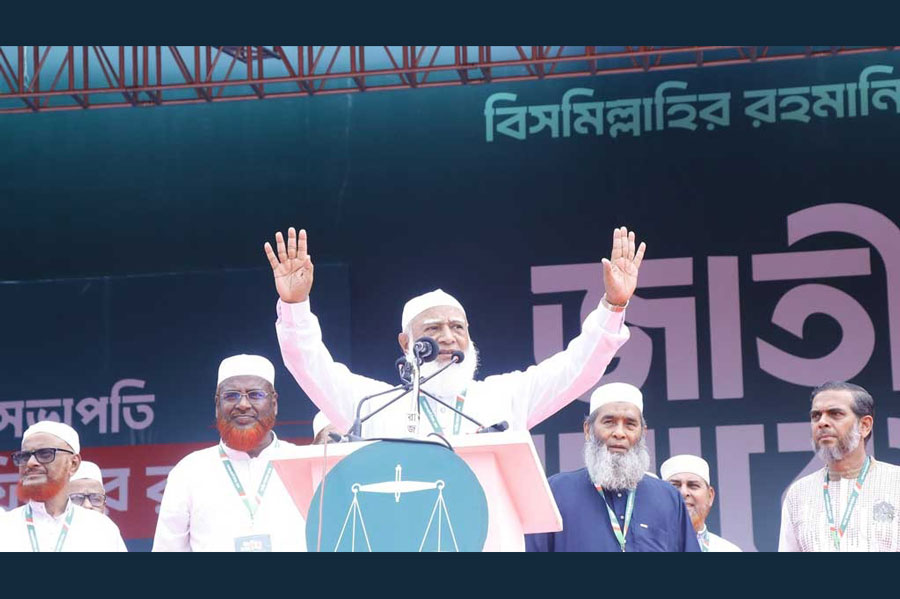 Jamaat chief Shafiqur Rahman presided over the rally, and was joined on stage by deputy chiefs, a position known as Nayeb-e-Ameer, Mujibur Rahman, Syed Abdullah Mohammad Taher, Secretary General Mia Golam Parwar, Assistant Secretary General ATM Masum, Publicity Secretary Matiur Rahman Akand, and Dhaka South chief Nurul Islam Bulbul.