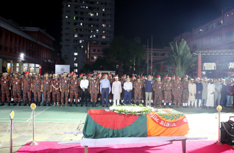 Home Adviser Lt Gen (retd) Md Jahangir Alam Chowdhury, Special Assistant to Chief Adviser Md. Khuda Baksh Chowdhury and Director General of the Department of Fire Service and Civil Defence Brigadier General Muhammad Jahed Kamal were present at the janaza along with senior officials and personnel of the ministry and the fire service department, BSS reports.