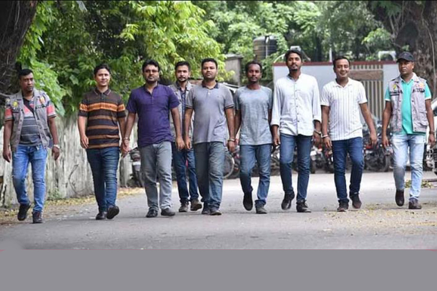 The arrestees are Dhaka University Chhatra Dal's Senior Joint General Secretary Mominul Islam Hejisan, Vice-President Md Hasanur Rahman Hasan, Joint General Secretary Md Abdullah Ar Riyad, and Central Committee Joint Organising Secretary Md Shahadat Hossain, along with the organisation's former senior joint general secretary at Jahangirnagar University Zahir Uddin Mohammad Babar, and former vice-president at a private university Mohammad Arif Billah.