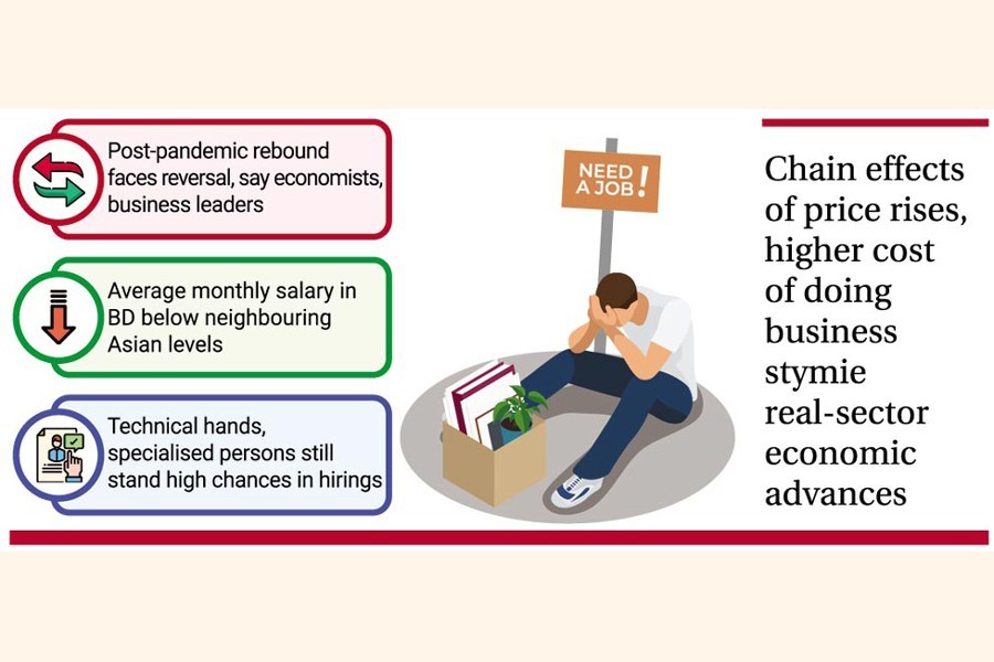 Rising business-operating costs have squeezed Bangladesh's job market during the last six months, after an initial rebound from pandemic shocks, in one of major marked setbacks.